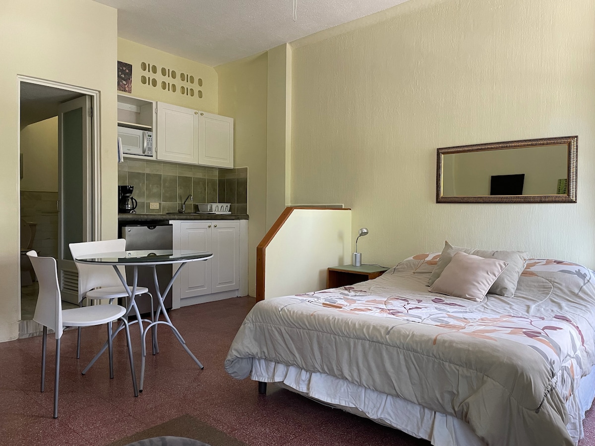 Comfortable, modern, and bright suite, equipped with everything you need to feel at home. It has a practical kitchenette with a minibar, microwave, dishwasher, coffee maker, small appliances, and more. It also has a wardrobe and iron, premium beds, linens, and towels for added comfort. Perfect for a professional, couple or small family of 4. Centrally located, walking distance to restaurants, and close proximity to Plaza San Francisco and the general hospital. A unique space & special service.
