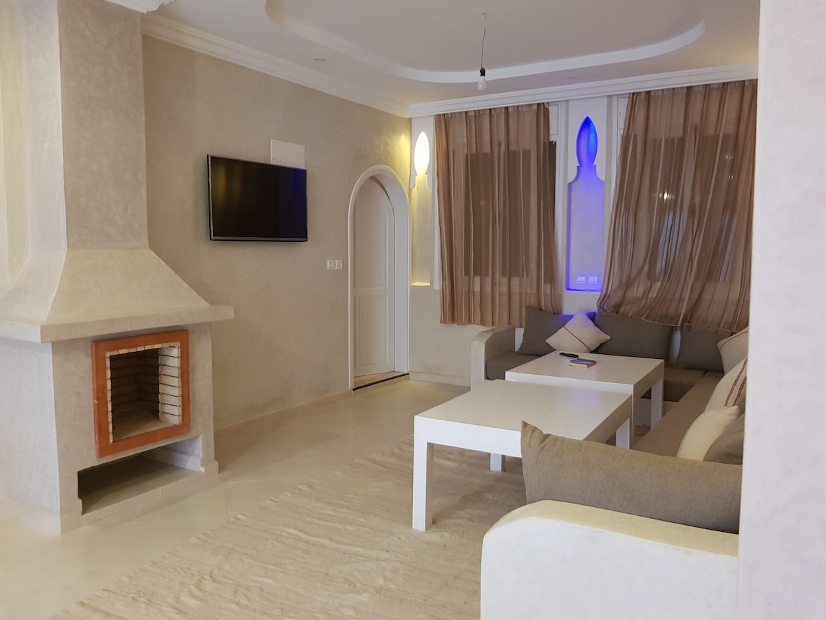 Appartament fis-sular t 'isfel b' żona ta' 100 m. li fih 2 kmamar tas-sodda u kamra tal-banju, kamra tas-salott, kċina u ġnien żgħir (URL MOĦBI) quddiem id-dar. Stil ta' Tadlakt u arkata li tagħti lill-appartament faxxinu tradizzjonali. Li jinsab f' post paċifiku qrib il-baħar.