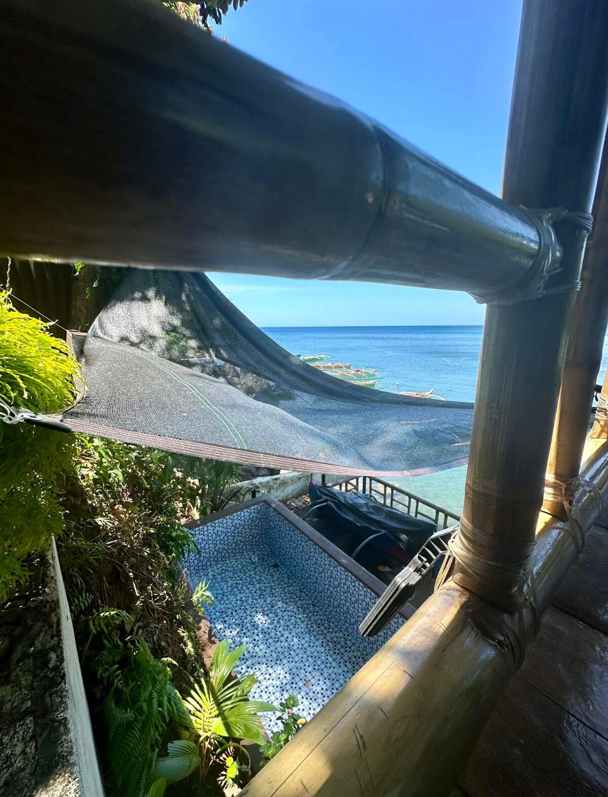 Il-Kabina tal-Bambù toffri avventura tropikali unika għalik u għall-familja tiegħek. Għandha veduti b' veduti kbar qrib il-baħar u nżul ix-xemx, moll privat għall-għawm, kayaking, sajd u attivitajiet oħra tal-ilma. Għandha wkoll pixxina żgħira. Hija wkoll quddiem ir-resort ta' Lourdes Bay fejn Pilgrims jistgħu jżuru l-Faltrina Archdiocesan tal-Mara Miraculous tagħna ta' Lourdes. Biss, għax nixtiequ nżommu l-post serju, ma naċċettawx mużika qawwija, sistemi tal-ħoss qawwija jew videoke