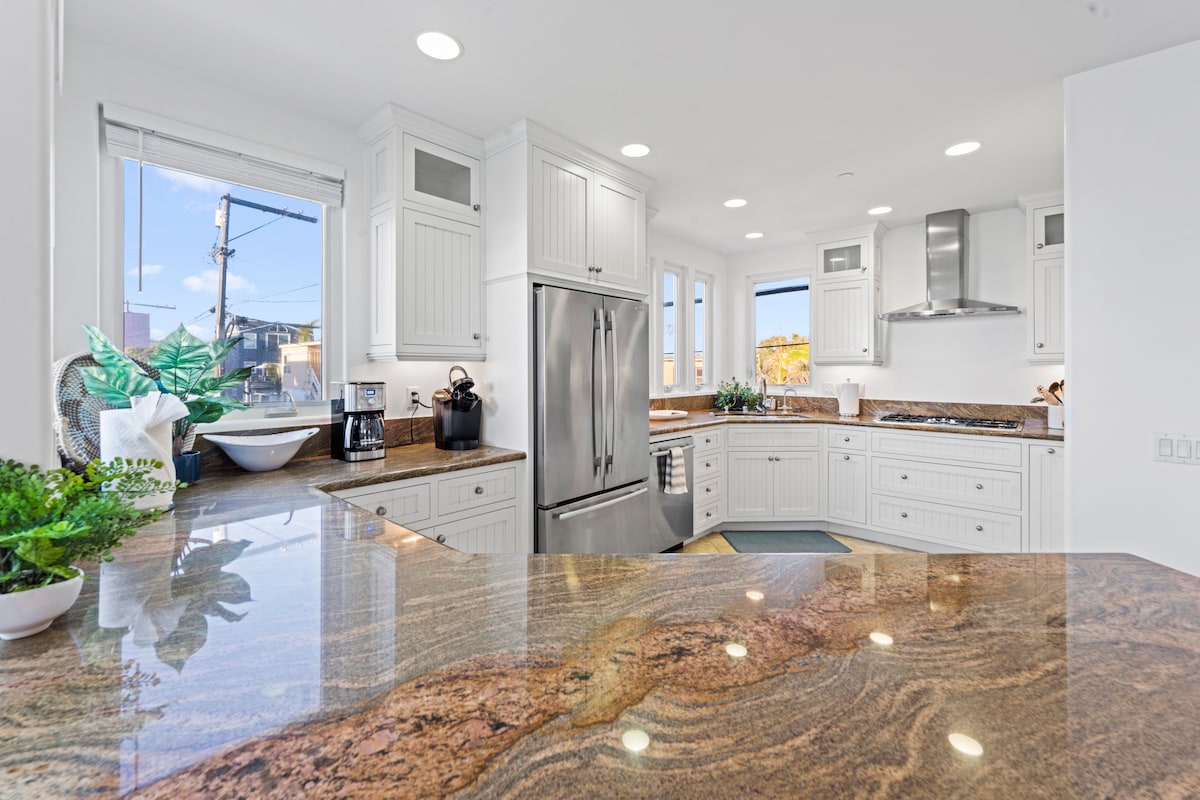 One of Pacific Beach’s top 1% of stays and a Superhost favorite - our 3-bedroom Crown Point townhouse is built for groups who want the best of PB without the boardwalk chaos. The private rooftop deck and hot tub is ideal for watching the sunset and Sea World fireworks. Garnet Ave's coffee shops, restaurants & boutiques are an easy walk; the ocean is a short stroll or 7-minute bike ride. Inside, three quiet bedrooms sleep 6 in real beds, and the kitchen is stocked for groups who actually cook.