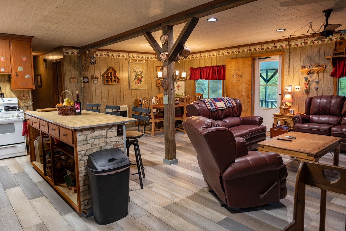 Luxury Mountain Escape b' Aċċess għall-Klabb Falling Leaf Lodge hija l-ikbar u l-iktar suite lussuża tagħna li tinsab f' 4,500 pied fil-Muntanji Blue Ridge. Gawdi l-veduti ta' tlugħ ix-xemx mill-gallarija privata tiegħek u aċċess esklussiv għall-Klabb tal-Kampanja tal-Ajru tal-Muntanji: golf, spa, pixxina, gym, ikliet, sport tar-rakketti u aktar. Ideali għal vaganzi romantiċi jew ta' kwalità għolja. L-ebda pets. Ibbukkja issa-dati tal-premium jimxu malajr!