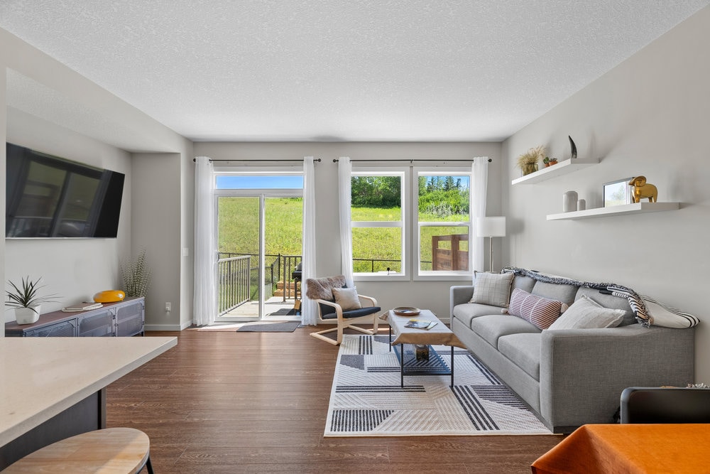 Walk-out executive basement suite with stunning mountain views backing onto Gleneagles Golf Course in picturesque and vibrant Cochrane. Private entrance, fully self-contained with free parking. This legal, soundproofed and fireproofed 750 sqft suite has its own dedicated furnace and thermostat. Private laundry, open plan kitchen, bedroom with queen bed and ensuite, TV with cable, WiFi. Natural gas BBQ on a private patio from where you can relax & watch the sun set over the mountains.