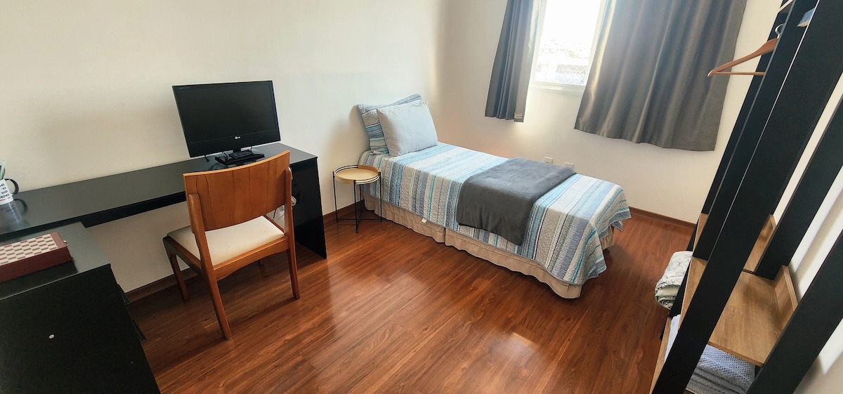 Propjetà li tinsab f' post tajjeb ħafna, fiċ-ċentru tal-belt, ħdejn it-terminal tal-karozzi tal-linja, ħdejn l-istazzjon tal-ferrovija CPTM ta' Mogi das Cruzes. Il-Propjetà għandha l-għamara kollha meħtieġa għal żjara mill-aqwa. Għandha kamra tas-sodda b' sodda doppja, kċina kompluta wkoll, żona tas-servizz, fis-salott għandna mejda tal-ikel u sufan li jdur għal sodda. Propjetà bit-taraġ. Bla dubju, se jkollok esperjenza ta' kiri mill-aqwa, aħna naħsbu f' kull dettall b' imħabba kbira għalik.