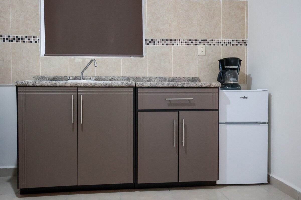 Appartament lussuż kompletament mgħammar u mgħammar għal massimu ta' 2 persuni. Jinkludi : * Sodda ta' daqs queen * Televixin * Internet * Żona għall-ħasil tal-ħwejjeġ u għat-tnixxif tal-ħwejjeġ * Parkeġġ modern għal karozzi kumpatti (Karozzi mhux kompatti hemm spazju barra l-appartament) * Kċina mgħammra Qrib * Cristo de la Bartola 3 minuti * Is-Salib l-Aħmar 2 minuti * Klinika 7 IMSS 3 minuti * Estadio Acereros 5 minuti. Ristorant fil-qrib * Sussos Grill * La Marola * Dong Sushi *Pappa' Grill *Adattat għall-Pets
