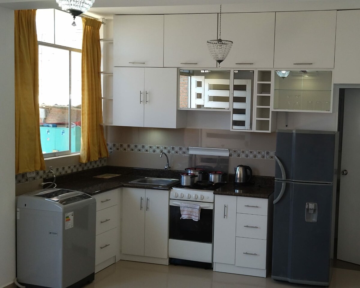 Jekk ġejt Chiclayo għax-xogħol, għas-saħħa jew għall-vaganzi, waħdek jew bħala koppja, noffrulek appartament żgħir ġdid u sabiħ, mgħammar kollu u b'aċċess indipendenti, f'post ċentrali f'Chiclayo, qrib iċ-ċentri tax-xiri, il-maħżen, l-ispiżeriji u r-ristoranti, għandna dak kollu li għandek bżonn għal żjara komda u sigura, ibbukkja issa u għix l-aħjar esperjenza. Irrilassa f' dan l-ispazju kwiet u eleganti.