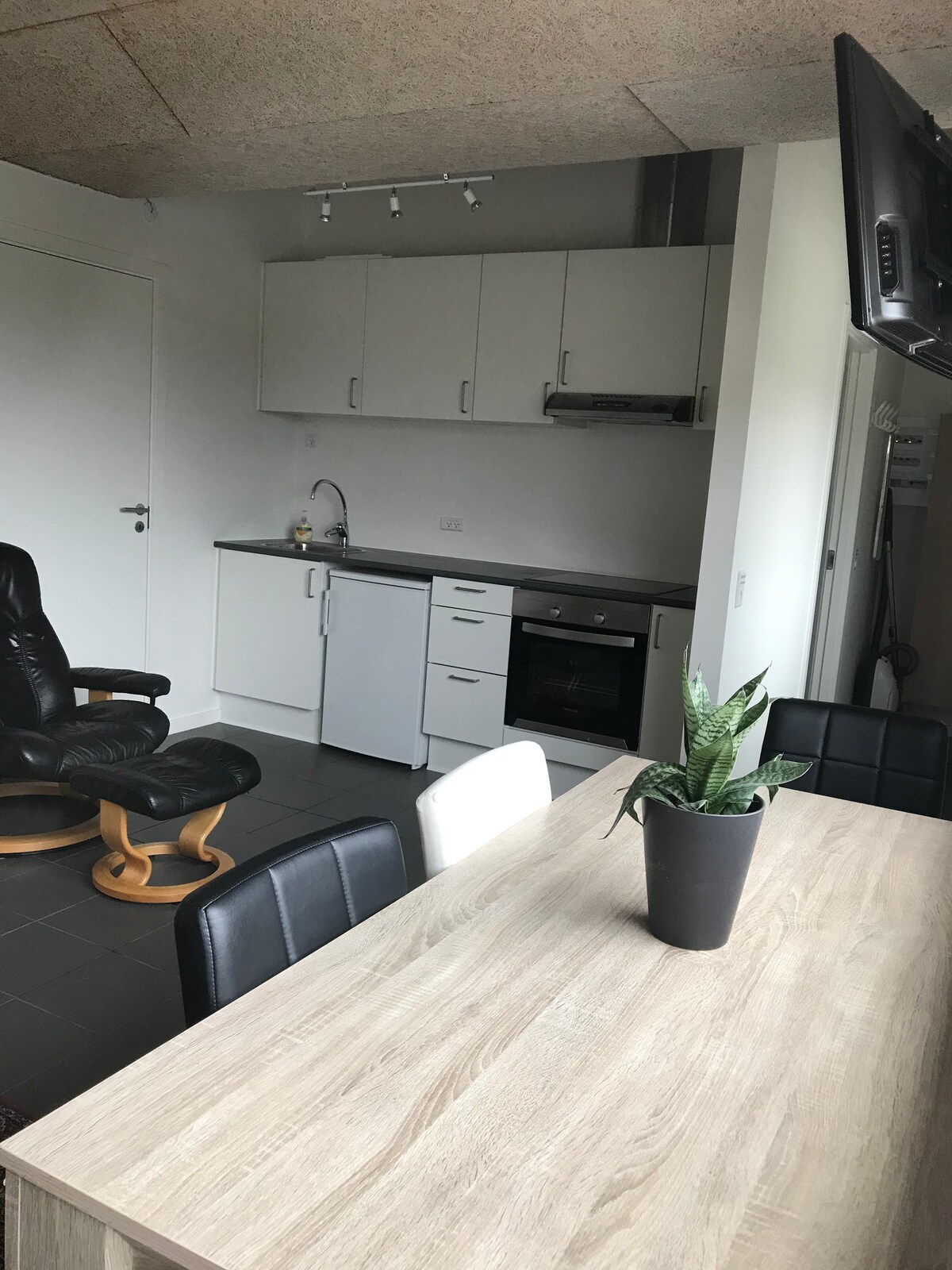 Appartament sabiħ ġdid b' kamra tas-sodda waħda b' daħla privata, tojlit privat u doċċa kif ukoll il-kċina tiegħu stess fuq triq residenzjali kwieta. > Post ċentrali ġewwa Skive > Parkeġġ quddiem id-dar Distanza: 100 metru: Barracks tal-iskive, kafetterija, waqfa tax-xarabank 500 metru: Ċentru kulturali, sport, park tal-ilma, art għal-logħob, bowling, mogħdija tat-tlielaq 1000 metru: Xiri, foresta, mogħdijiet għall-ġiri, mogħdijiet għar-roti fil-muntanji 3000 metru: Ċentru, port, stazzjon tal-ferrovija eċċ. 25 minuta sewqan sa Viborg, Jesperhus eċċ. Attenzjoni! > Ma jistax ikun hemm tipjip fir-reġistru kollu tal-art.