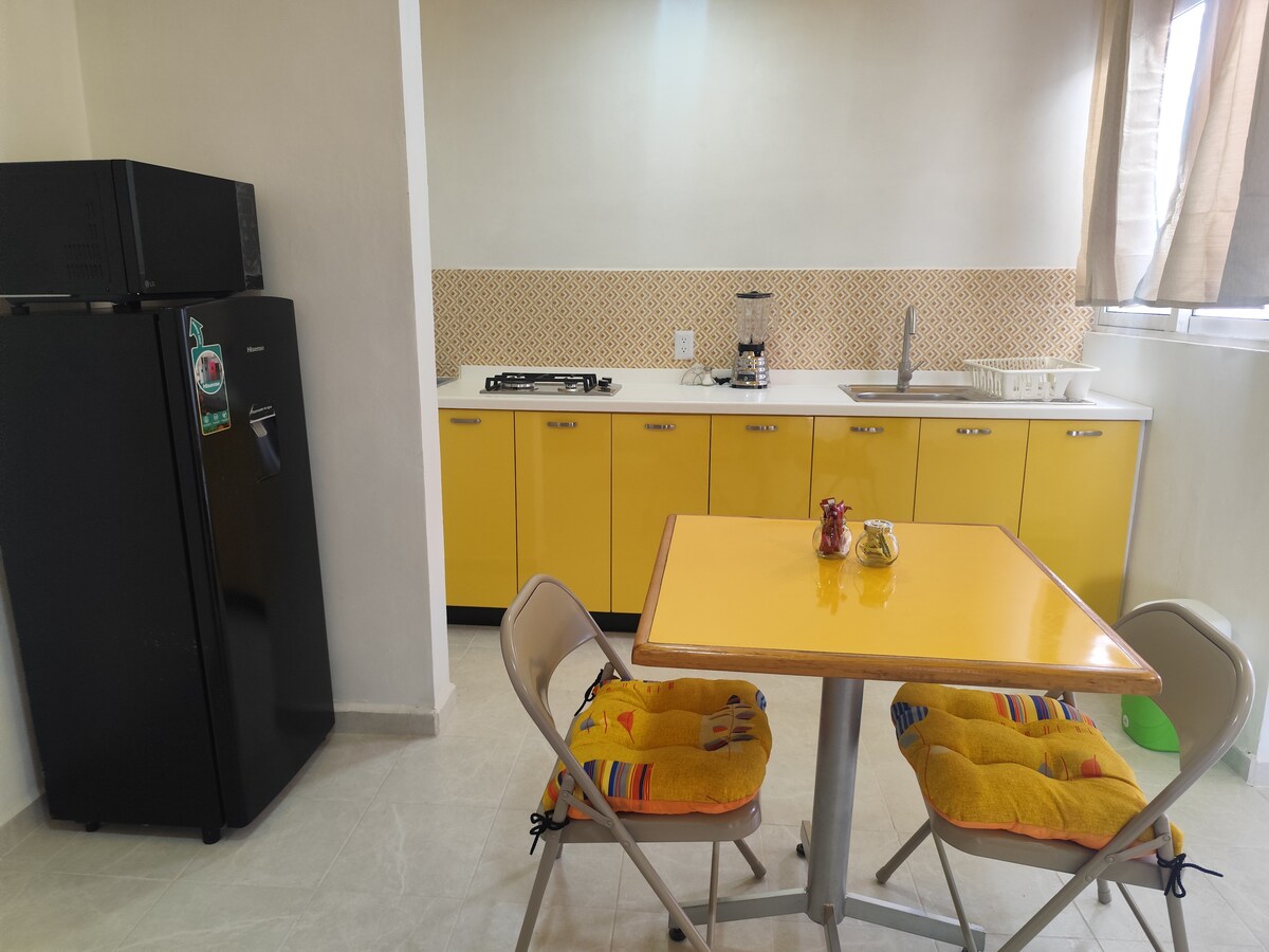Appartament sħiħ 15-il minuta 'l bogħod mill-ajruport, 10 minuti' l bogħod minn Foro Sol, Palacio de los Deportes y Autodromo Hermanos Rodriguez bil-karozza. 2 ikmamar tas-sodda b' skrivanija, kamra tal-banju, kċina u salott - kamra tal-ikel.