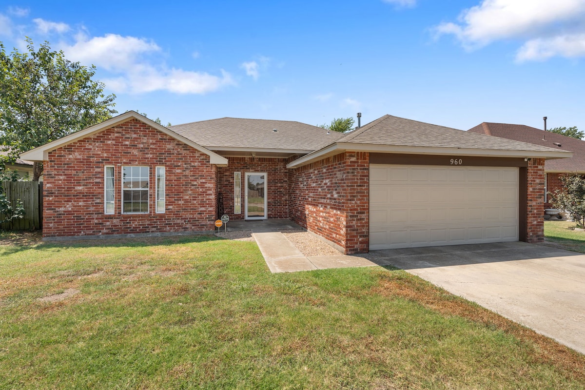 Dar b' kunċett miftuħ li tinsab inqas minn 20 minuta 'l bogħod minn Downtown OKC, OU Campus u Tinker AFB. Id-dar tagħna hija inqas minn 5 minuti sewqan minn ħwienet tal-ikel, ristoranti u għażliet oħra ta 'xiri. Inkluż maż-żjara tiegħek huwa WiFi b 'veloċità għolja b' xejn, żewġ televiżjonijiet intelliġenti kbar, bar tal-kafè mgħobbija kompletament, kamra tal-ħasil tal-ħwejjeġ bid-deterġent, bord tal-mogħdija mibnija u garaxx b' 2 karozzi. Il-bieb ta 'wara għandu bieb tal-klieb mibni għal klieb żgħar sa ta' daqs medju li jipprovdi aċċess faċli għall-privat fil-bitħa ta' wara.