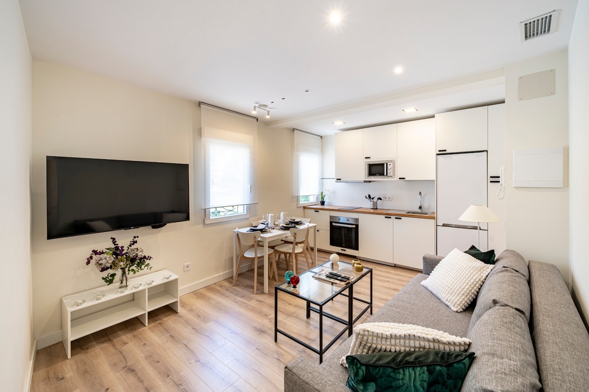 Ħossok qisek qiegħed id-dar f' dan l-appartament komdu mimli dawl-perfett għall-familji jew għall-gruppi ta' mhux iktar minn 4 klijenti. Il-kamra tas-sodda serra tinkludi sodda doppja komda, filwaqt li s-salott spazjuż fih sufan sodda konvenjenti għal 2 klijenti oħra. It-twieqi l-kbar jimlew l-ispazju b' dawl naturali u l-gwardarobba ġenerużi jgħinuk iżżomm iż-żjara tiegħek organizzata. Kemm jekk qed tesplora Madrid kif ukoll jekk qed tirrilassa d-dar, dan l-appartament joffri l-bażi perfetta.