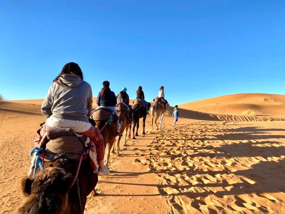 se niltaqgħu fil-punt tal-laqgħa fejn se tipparkja l-karozza tiegħek. Imbagħad se tkun qed tiġbor minn 4x4 biex tibda r-rikba tal-ġemel tiegħek. Inti se tieqaf f 'nofs l-għaram biex tara x-xemx u mbagħad tkompli għall-kamp. Fil-kamp, se tkun milqugħ/a b 'te u berber jitbissem. Wara ikla mill-isbaħ, il-ferħ se jibda b 'tnabar u mużika berber madwar in-nar. Jew sempliċiment jista 'jkollok mixja taħt il-lejl bi stilel. Filgħodu wara l-kolazzjon, se tieħu l-iġmla lura .
