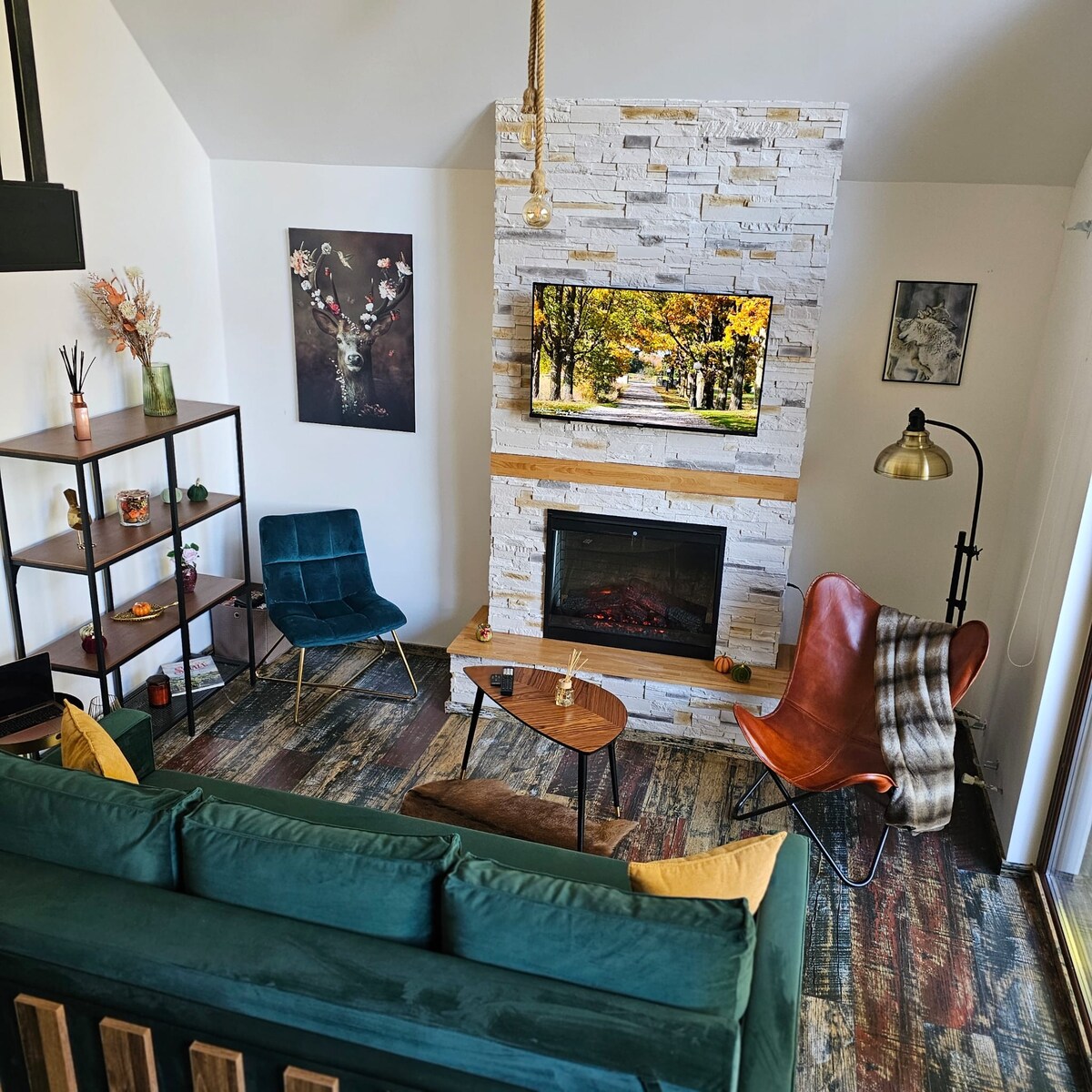 WOOD Studio jinsab f 'żona kwieta ħafna, madwar kilometru' l bogħod mill-Kastell ta' Peles u mixja ta' 15-il minuta miċ-ċentru tal-belt. L-istudio għandu disinn speċjali, iddisinjat għal vaganza pjaċevoli ta 'koppja jew familja b' tifel wieħed. Il-propjetà għandha WIFI u NetFlix, kċina mgħammra bi friġġ, microwave u magna tal-espresso tal-kafè, smart TV, tisħin ċentrali stess, parkeġġ fit-triq. Qrib il-propjetà tista 'tagħżel mixjiet fit-tul, rota tal-muntanji jew skiing