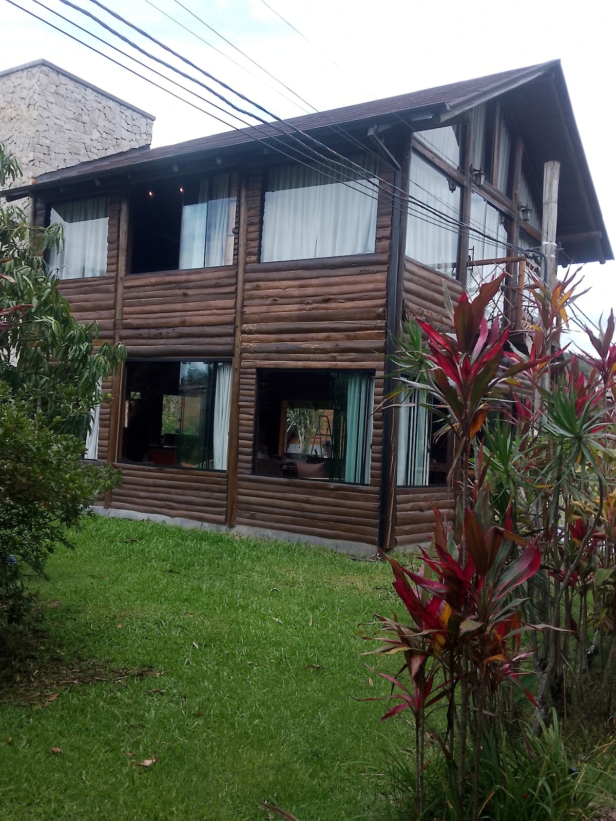 Nossa cabana, em estilo rústico de alto padrão, teve cada detalhe idealizado pensando no seu conforto e deleite, porque além de ser completo, contando com duas lareiras, duas TVs, dois aparelhos de ar-condicionado, dois banheiros, banheira de hidromassagem, aquecimento de água à gás em todas as saídas, cozinha equipada com fogão à lenha, aparelho de founde, dentre os itens básicos, garagem com churrasqueira, é de extrema beleza, tudo para lhe proporcionar uma experiência inesquecível.