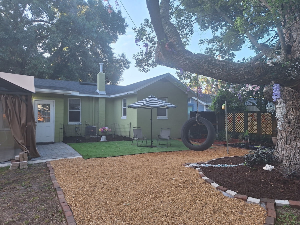 Komdu, nadif u ħelu! Sewqan ta '5 minuti biss lejn iċ-ċentru tal-belt. Id-dar hija storja waħda u tinsab f 'viċinat pittoresk. Ġewwa hekk kif dħalt hemm salott spazjuż b 'sufan b' forma ta' L li jħares lejn il-fireplace elettriku modern sabiħ u t-TV kbir. Tqassim mill-aqwa b 'Master fuq naħa waħda u ż-żewġt ikmamar tas-sodda fuq in-naħa l-oħra. Il-kċina hija kompletament mgħammra b 'dak kollu li għandek bżonn. Barra hemm veranda quddiem, lanai kbir mgħotti fuq wara u bitħa kbira magħluqa għall-pets tiegħek.