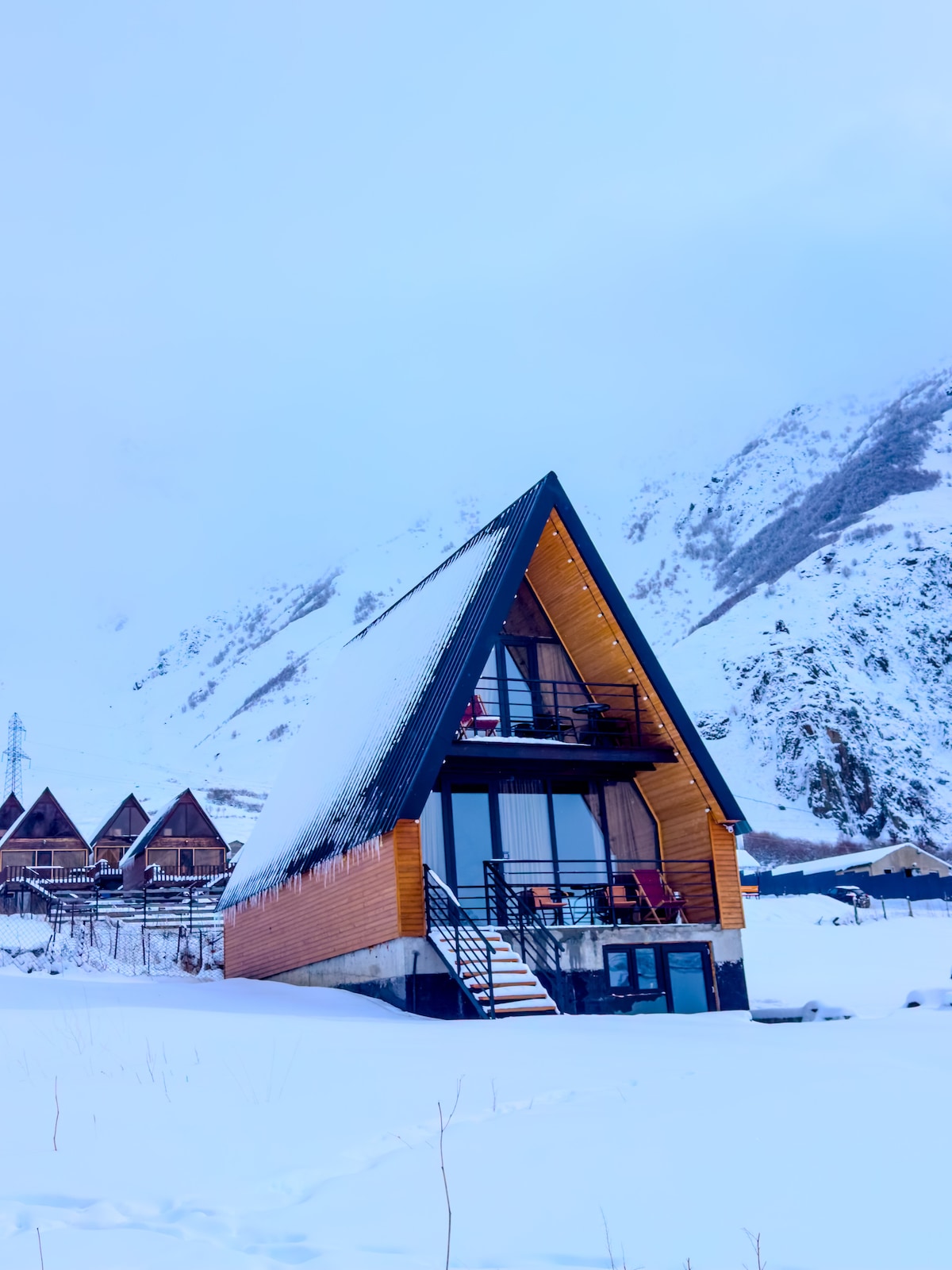 Kabina A-frame fil-kwiet ġewwa Kazbegi - Stepantsminda ħdejn ix-xmara, imdawra bil-muntanji. Gawdi minn arja friska, veduti sbieħ u trankwillità sħiħa. Nadif, komdu u mgħammar b' kollox. Ideali għall-koppji, għall-ħbieb jew għall-familji. Qrib il-mixjiet fit-tul u l-kaskati. Organizzat minn Superhost għal żjara mingħajr xkiel.