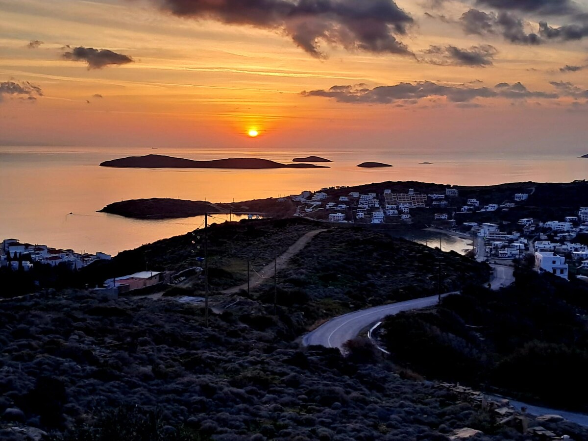 Residenza ċikladika, kompletament rinnovata, qed tistenniek ġewwa Apoikia, Andros. Gawdi l-akkomodazzjoni tiegħek fin-natura, 20'sewqan' il bogħod minn Chora, fejn is-sbuħija u s-sempliċità tradizzjonali u moderna jsiru waħda. Idħol fis-serjetà ta' pajsaġġ naturali sabiħ, ideali għal sessjonijiet ta' yoga paċifiċi. Permezz ta' rotot ta' mixjiet fit-tul ftit mumenti 'l bogħod, tista' tiskopri faċilment ix-xenarju mill-isbaħ ta' Andros, imbagħad terġa' lura għall-kwiet kwiet tal-ħarba mill-gżira tiegħek. * il-vettura personali hija meħtieġa, hemm parkeġġ bla ħlas disponibbli