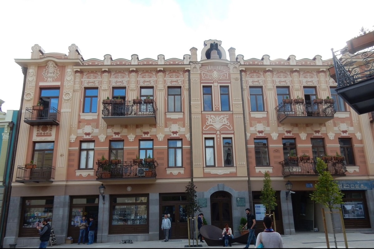 Appartament storiku eleganti bi projector fil-kamra tas-sodda, gallarija komda u dwal tan-neon:) ㅤ Hija tinsab f' bini ta' wirt kulturali ta' 200 sena, li jinsab fil-parti storika tal-belt, ħdejn il-Konservatorju tal-Istat ta' Tbilisi (filgħaxija tista' tisma' mużika live waqt li tkun bilqiegħda fuq il-gallarija). ㅤ Iż-żona hija mimlija teatri, mużewijiet, pubs, ristoranti u ħwienet. Ftit minuti mixi 'l bogħod minn Rustaveli Av. u Freedom Square, waqfa tal-karozzi tal-linja lejn/mill-ajruport, żewġ stazzjonijiet tal-metro.