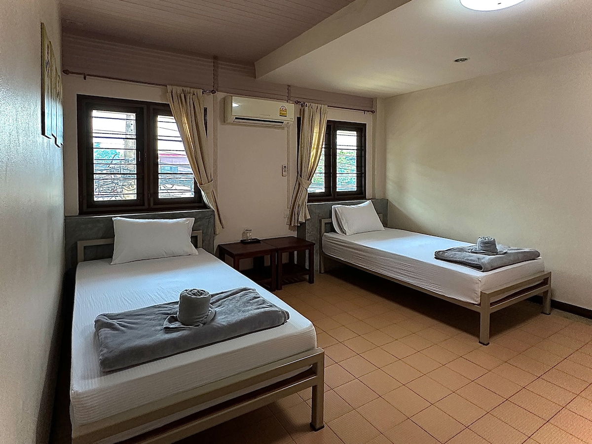 The Nine Bed & Restaurant in Ban Don Rak offers three-star comfort with air-conditioning, private bathrooms, and garden views. Each room includes a bidet, refrigerator, work desk, and free toiletries. Dining Experience: Guests can enjoy Thai cuisine at the on-site restaurant, complemented by free WiFi. An à la carte Asian breakfast is available daily.