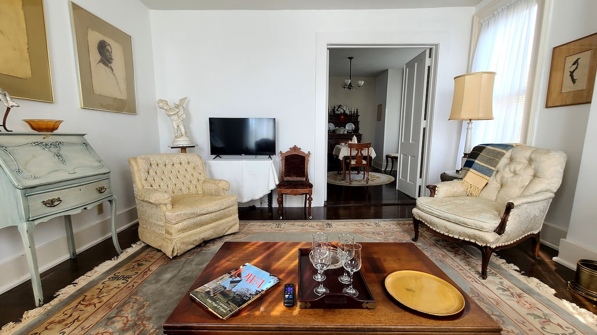 Oqgħod f' loft taċ-Ċentru tad-Distrett Storiku! Veduti tax-xmara. Park fil-qrib, art għal-logħob, mogħdijiet għar-roti, rampi tad-dgħajjes u marina. Xiri, mużika live u ristoranti. Daħla privata b' 1,000 pied kwadru ta' spazju, kunċett miftuħ, kċina sħiħa, TV, ħasil tal-ħwejjeġ, banju privat, litteralment f' nofs kollox. Checkin fil-Ħolqien minn Oz "Ġojjellerija, Inbid u Sejbiet Uniċi". Gawdi tazza inbid malli tagħmel iċ-checkin. Ejja bil-ġuħ. Il-kummenti tar-ritratti jipprovdu għażliet ta' ikliet f' passi 'l bogħod mill-Kamra Emerald.