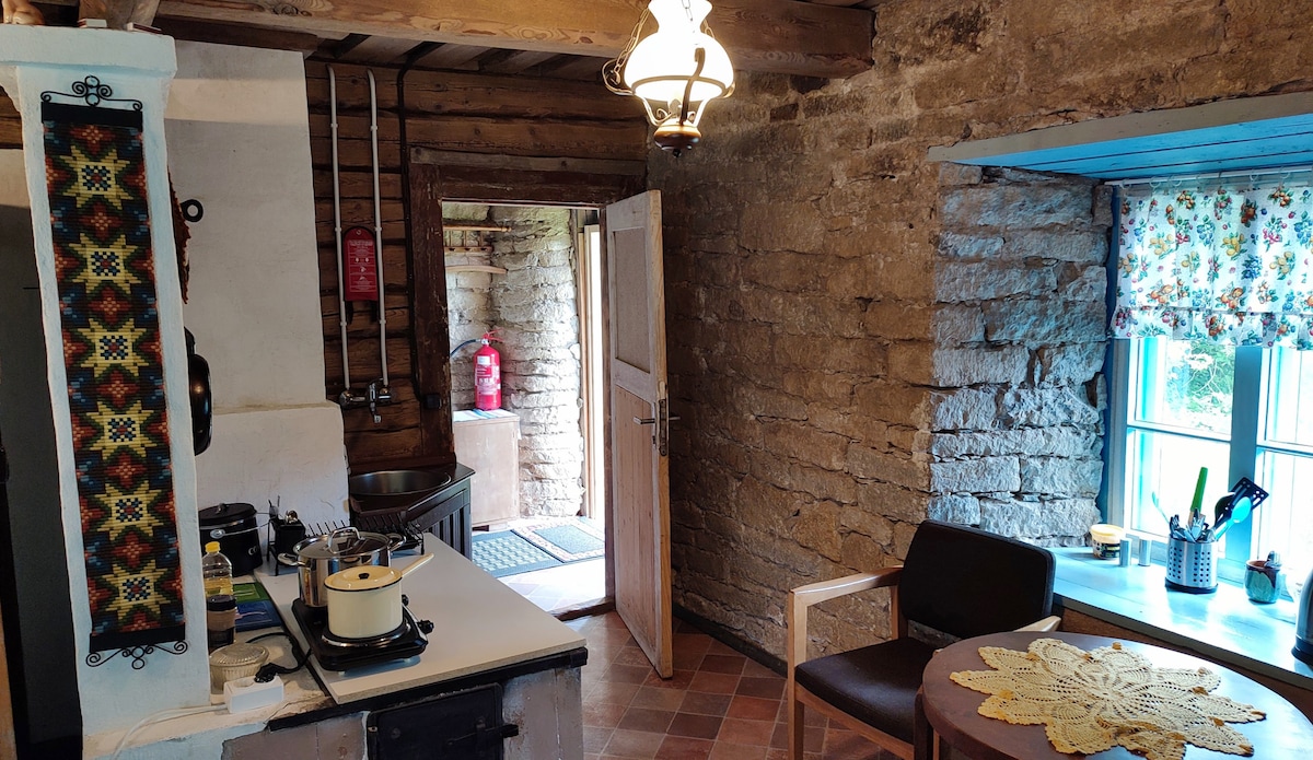 Dar żgħira komda - ambjent sabiħ u veduti sabiħa ta' qasam miftuħ direttament mis-sodda tiegħek. Huwa l-post ideali fejn tistrieħ, tikkalma jew tgawdi vaganza 'l bogħod mill-ħajja tal-belt. Mgħammar b'kollox biex issajjar, inklużi borma, taġen, friġġ, cooker, toaster, pożati, platti, kafè, te, melħ, bżar, dqiq. Ideali wkoll għax-xogħol mill-bogħod, grazzi għall-internet veloċi ta' Starlink. Id-dar hija ta' 20m2 fis-sular t'isfel u 12m2 fis-sular ta' fuq. L-eqreb ħanut jinsab 12-il kilometru 'l bogħod. Imtieħen tar-Riħ ta' Angla - 8 km Krater Kaali - 14 km Kuressaare - 30km