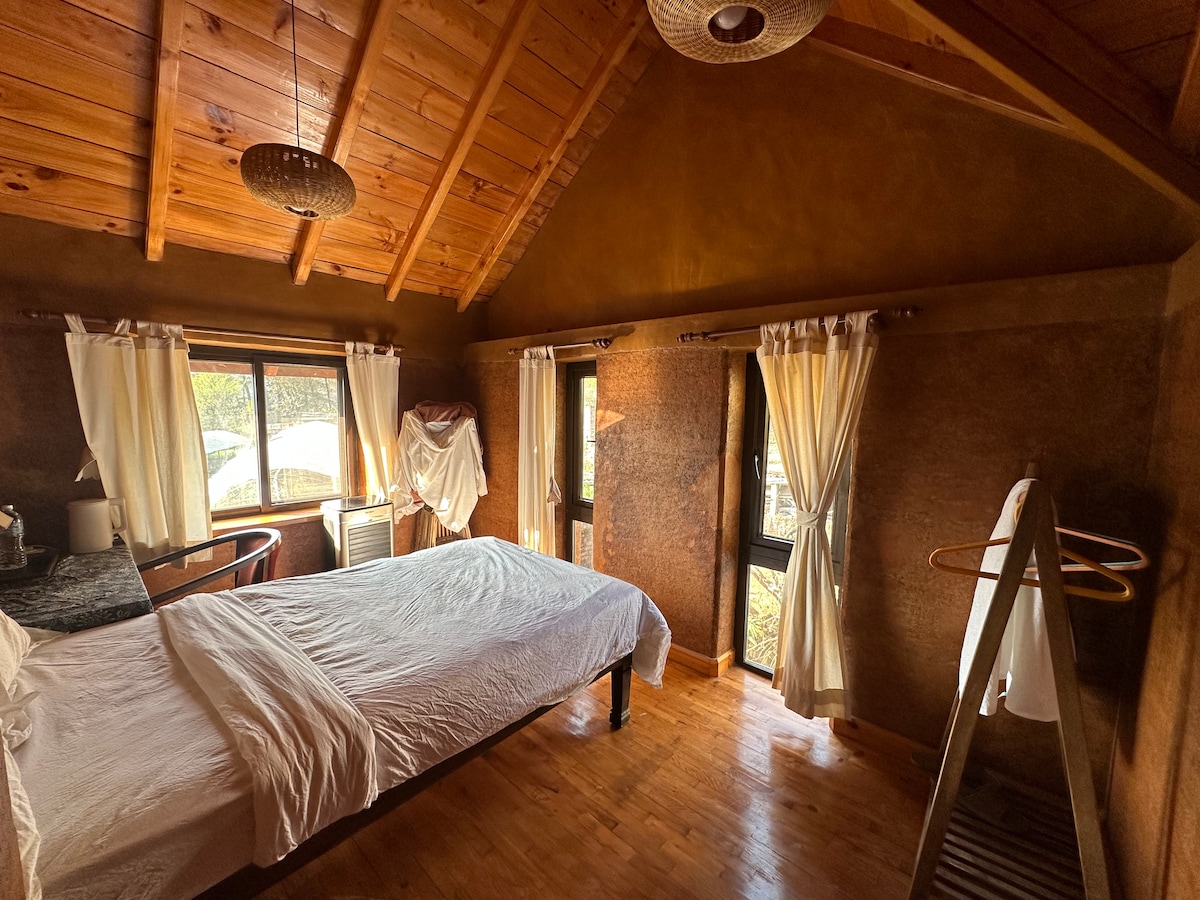 Tucked on a forest hilltop 12km from Kathmandu, our peaceful earthbag attic home invites deep rest. Enjoy the glass conservatory for meditation or relax on the deck above a lush food forest. Rooted in simplicity, a labor of love made for stillness; wake to birdsong, sip tea with Himalayan views, or wander forest trails. Perfect for slow days, soft silence, and fresh air. Fast WiFi & pickups available. Let go, unwind, and recharge in our unique sanctuary 40 mins from the city. Total peace.