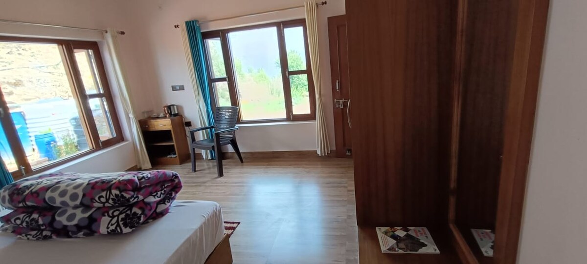 Din hija propjetà ġdida fjamanta li l-familja tiegħi lesti dal-aħħar. Bnejna dil-ħaġa bħala dar tal-vaganzi għalina nfusna kif ukoll għall-avventuriera u l-vjaġġaturi li jħobbu jgawdu l-paċi u s-sbuħija kbira li n-natura u dan il-post għandhom x 'joffru. Id-dar għandha 2 sulari, it-tnejn li huma mikrija bħala unitajiet separati, mgħammra kompletament mill-kumditajiet bażiċi kollha. Il-meded ta 'Himalayan tat-Tramuntana jinsabu eżatt fuq l-għatba tagħna u jidhru kompletament jekk it-temp jippermetti. Oqgħod magħna mdawwar b 'muntanji kbar u ħdura kbira.