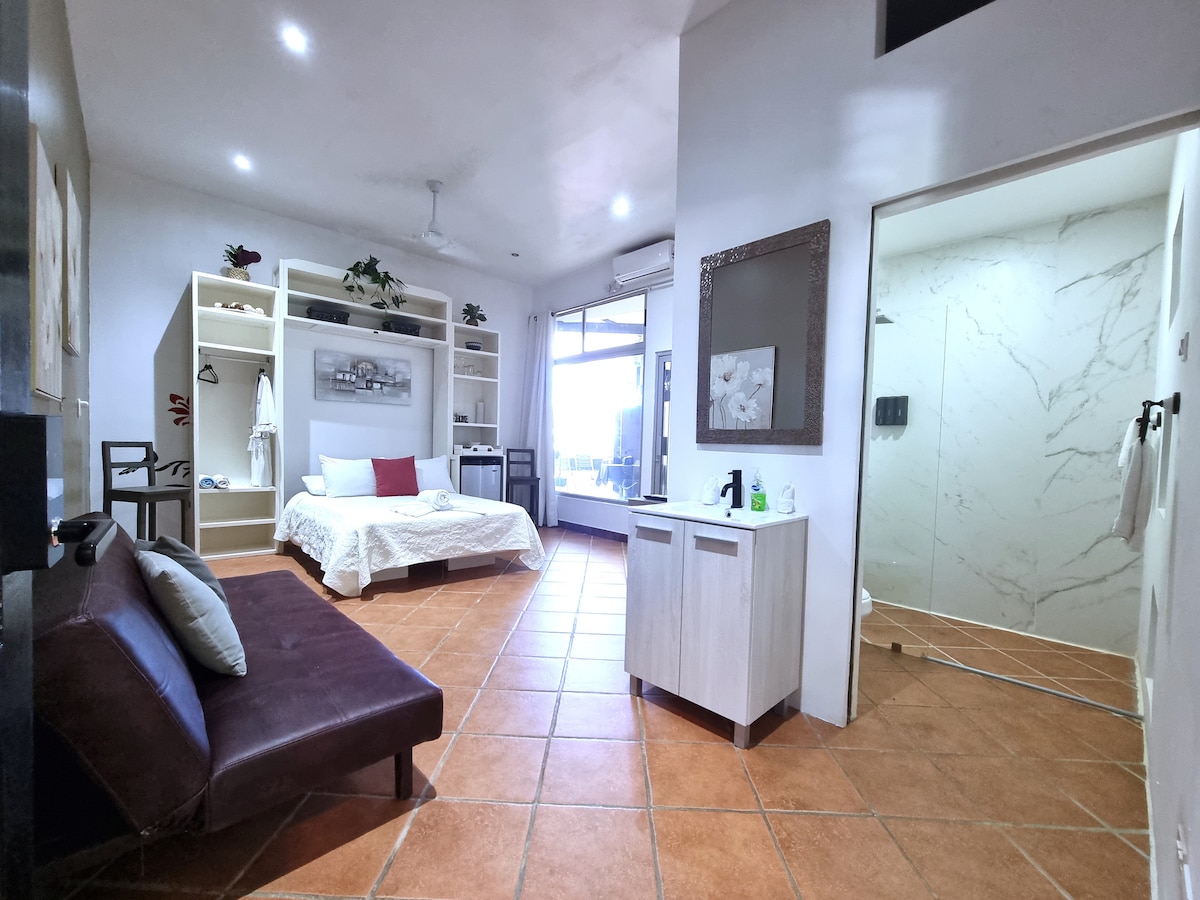Aħna ninsabu fil-qalba ta 'Manuel Antonio, għandna post privileġġjat b' aċċess għall-bajja u mdawwar b' natura lussuża. Il-faċilitajiet joffru biżżejjed parkeġġ, bar tiki u siġġijiet fuq il-bajja inklużi għall-klijenti tagħna. Il-kamra tinsab fl-ewwel sular u għandha żona soċjali fuq quddiem, ideali biex taqsamha bħala familja.