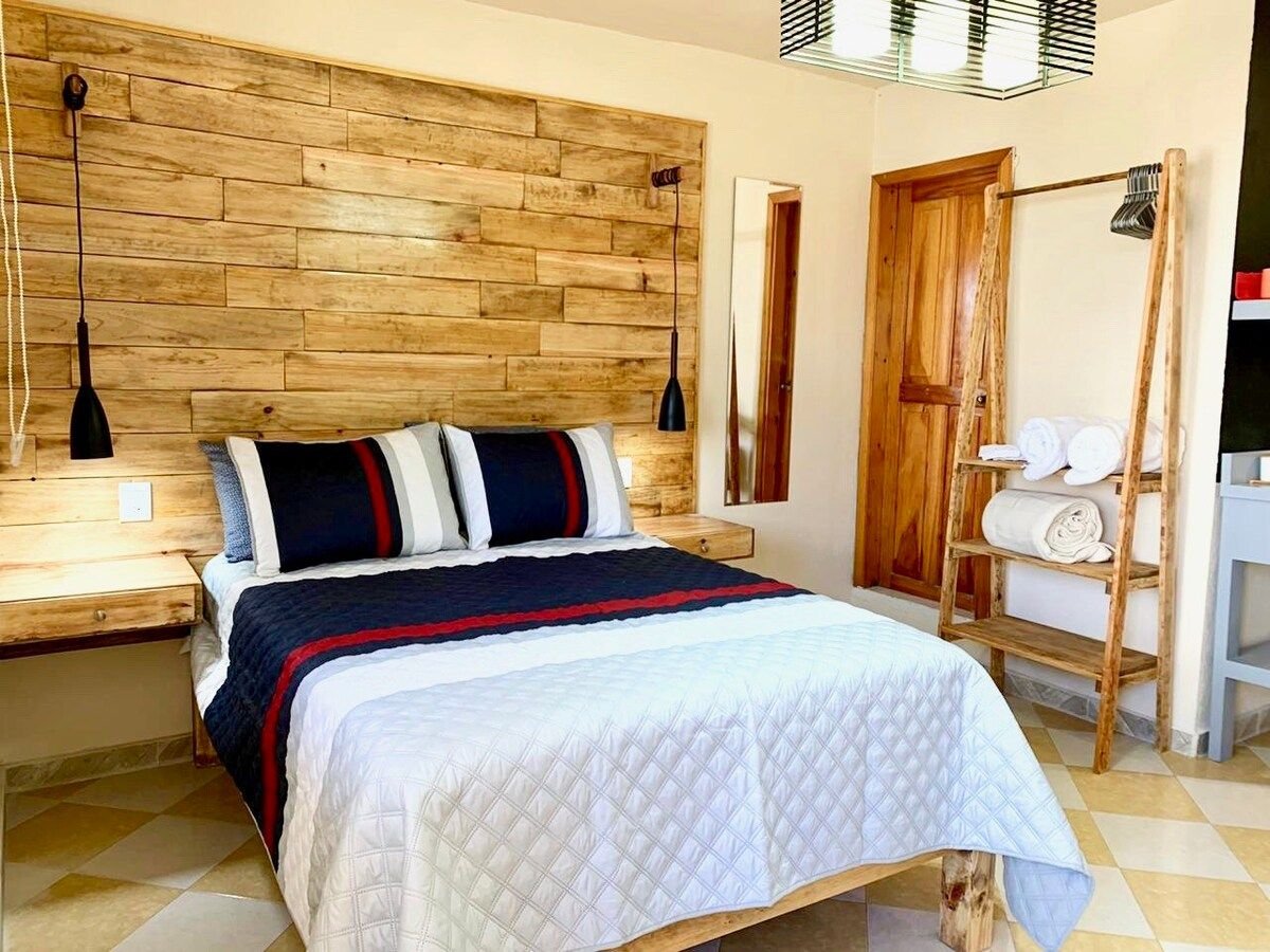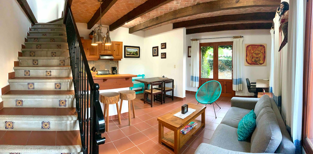 Ħarba lejn San Cristobal! Dal-post fejn toqgħod kompletament privat fil-viċinat vibranti ta' Guadalupe qed jistenniek, 15-il minuta mixi 'l bogħod minn Central Park. Ideali għall-koppji/nomadi diġitali, toffri kamra tas-sodda spazjuża (Queen), sufan sodda doppja, 2 kmamar tal-banju, kċina mgħammra, gallarija u terrazzin privat biex tgawdi mix-xemx u l-klima ta' Sancris. Jinkludi magna tal-ħasil/dryer, Smart TV, skrivanija u internet b' veloċità għolja. Il-bażi perfetta tiegħek biex tesperjenza l-maġija ta' Chiapas!