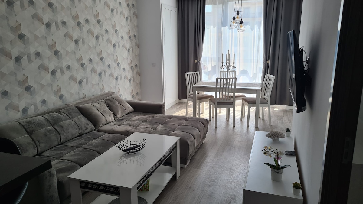 Prezz ta' kull xahar disponibbli FIT-TUL Erġa 'lura u rrilassa f' dan l-ispazju eleganti! Immaġina li tqum tħares lejn il-veduta mill-isbaħ tal-baħar. Immaġina l-ħsejjes tal-ħoss tal-mewġ kull lejl. Immaġina li jkollok ikla ħafifa għall-pixxina u l-pixxina u bar disponibbli għall-vaganza kollha tiegħek. Immaġina li tista' tgawdi 5 ristoranti a la carte f' distanza bil-mixi. Tista' jkollok dak kollu! Appartament ta' stil modern li għadu kif ġie rranġat f' resort faċċata tal-bajja ta' 5 stilel fil-qalba ta' Mamaia Nord - l-iktar bajja mfittxija ġewwa r-Rumanija.