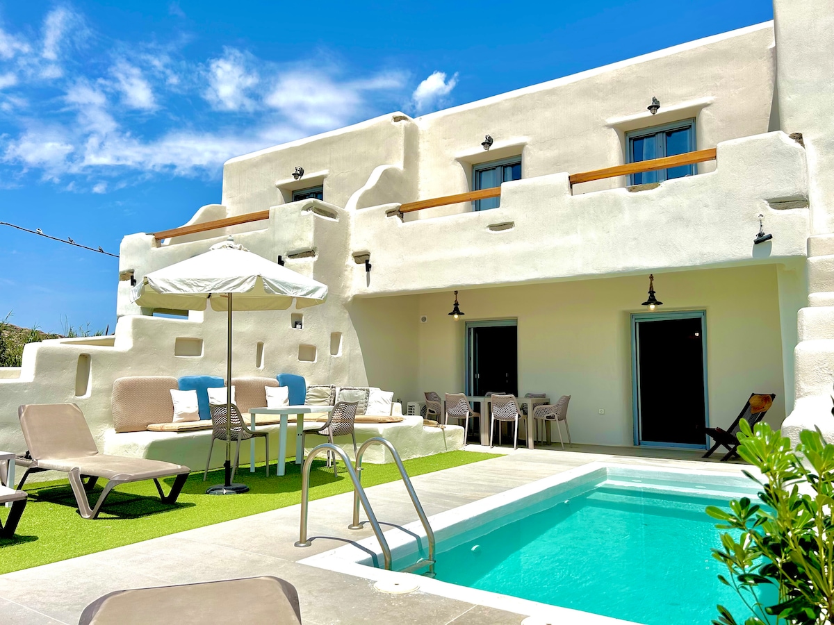 Għajnejn il-villa ta 'Naxos. Veduta unika-pixxina privata.