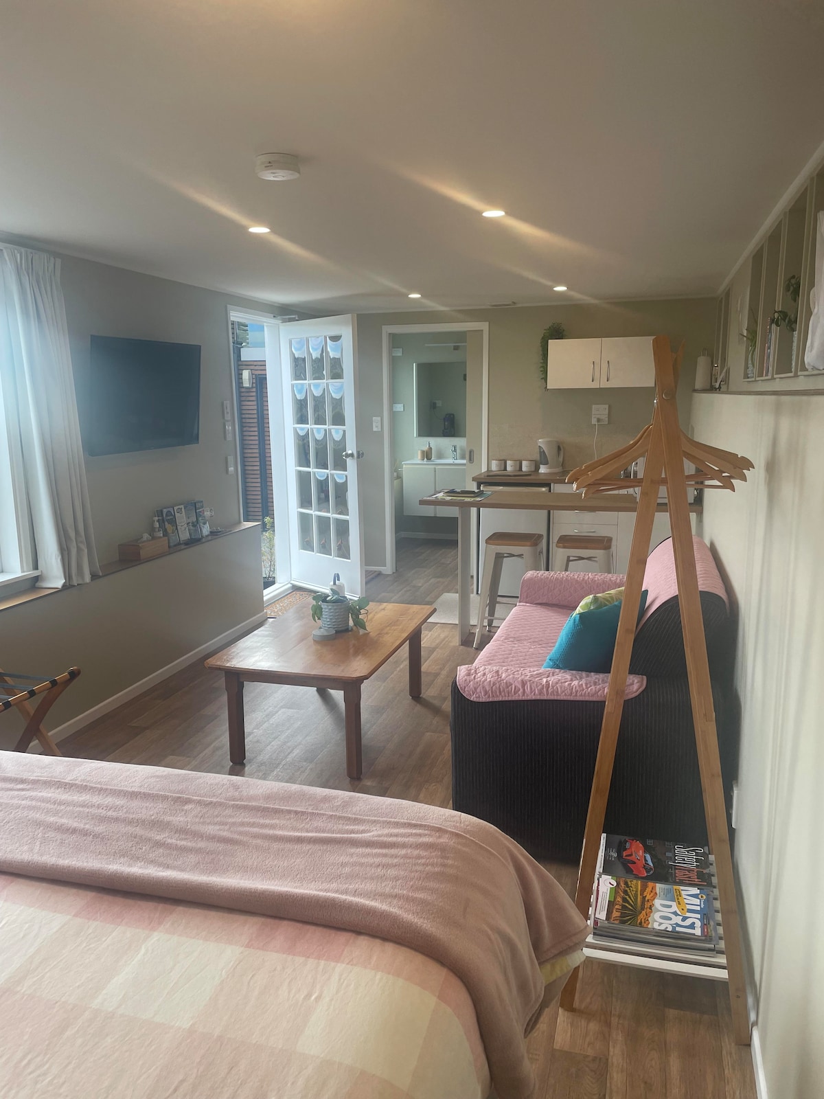 Studjo komdu li jinsab wara d-dar tal-villa tagħna tal-1900. Mixja ta '20 minuta saċ-ċentru tal-belt. Hemm park direttament tul it-triq. L-istudio fih sodda doppja 'queen' komda u kamra tal-banju ensuite. L-affarijiet essenzjali huma pprovduti. L-istudjo tagħna joffri bażi komda minn fejn tista' tiskopri dak kollu li Nelson Tasman jista' joffri. 10 minuti sewqan sal-ajruport u l-bajja u 5 minuti mixi sal-Isptar Nelson. Aħna qegħdin f' żona suburbani.