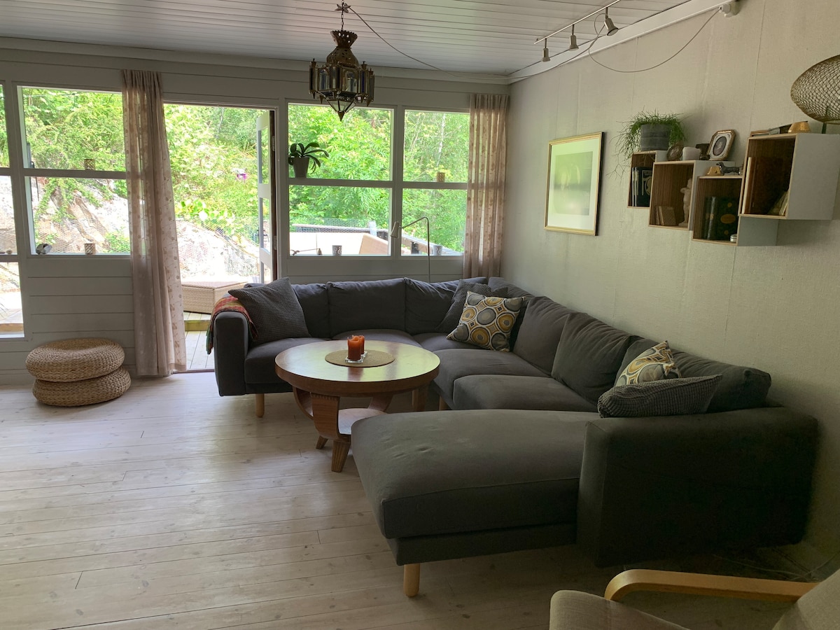 Dar żgħira maqtugħa fil-ġnien f 'żona popolari ta' villa fuq Oksval, Nesodden. Inqas minn 10 minuti mixi sal-waqfa tax-xarabank b' xarabank mate sa Nesodd boat. Id-dgħajsa Nesodd tmur lejn Aker Brygge u tieħu madwar 22 minuta. Distanza qasira lejn il-bajja ta 'Oksval u l-mogħdija tal-kosta. Mixi 'l bogħod sa Hellviktangen b' xena u gallerija tal-kafè u kunċert. Qrib l-Isptar Sunnaas. (Hemm fireplace fid-dar, iżda bħalissa huwa pprojbit mid-dipartiment tat-tifi tan-nar.)