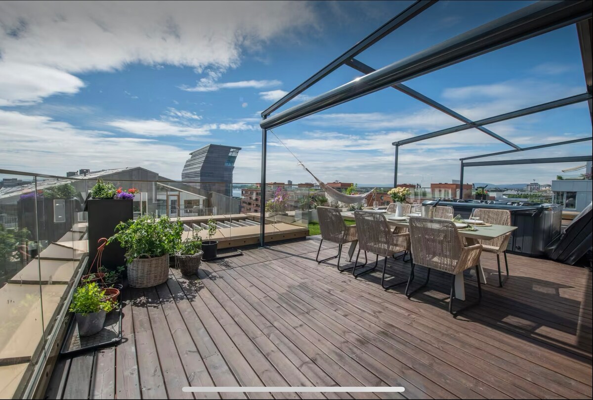 😍 Welcome to Aker Brygge, a bright and cozy apartment on the 9th floor with a large balcony, good sun, views and a rooftop pool. 🍹 The Aker Brygge area has a variety of shops, liquor stores, as well as many restaurants and cafes Hanami, Eataly, Café Sorgenfri, BAR Tjuvholmen etc. 💦 Swimming pool with year-round heating (28°C) 🌇 Several shared rooftop terraces with seating areas and great views of Akershus Fortress, the city and the Oslo fjord.