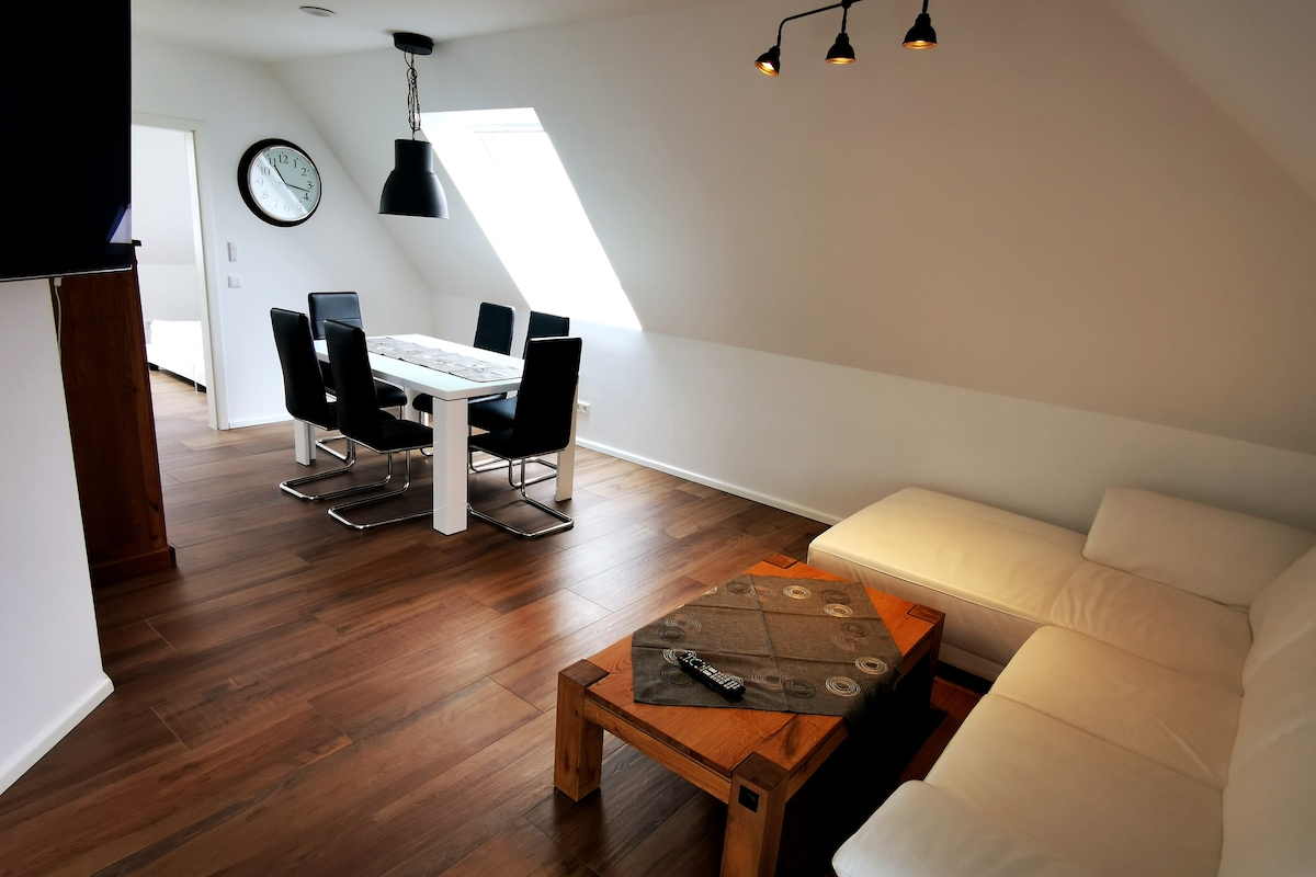 Il-vaganza eleganti tiegħek ġewwa Essen - b' sawna privata, jacuzzi u fireplace. Merħba f' post li huwa iktar minn sempliċiment post fejn toqgħod! X' għandek tistenna: - Żona tal-benesseri esklussiva b' sawna u jacuzzi privati, kif ukoll sodda kbira għar-rilassament, dawl indirett, TV, kontroll smarthome - Salott komdu b' mejda tal-ikel, fireplace u żewġ siġġijiet komdi - il-post tiegħek biex tispiċċa l-ġurnata - Kamra tas-sodda kwieta b' sodda doppja ta' kwalità għolja - Ħafna affarijiet li jħobbu f' kull kamra