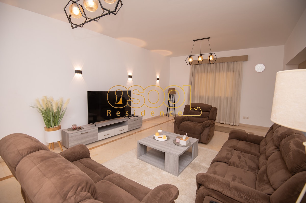Oqgħod f'appartament bi stil bi 3 ikmamar tas-sodda fuq l-istennija ġewwa Stone Residence, New Cairo. B'kamra tas-sodda prinċipali b'kamra tal-banju privata, żewġ kmamar tal-banju moderni u ġnien privat, hija ideali għall-familji jew għal min qed jivvjaġġa fuq xogħol. Il-klijenti jistgħu jagħmlu ċ-checkin waħidhom, jużaw WiFi b'veloċità għolja u jkollhom aċċess għal għadd ta' pixxini, lagi, grawnds tal-isport, kafetteriji u żoni għat-tfal fil-kumpless.