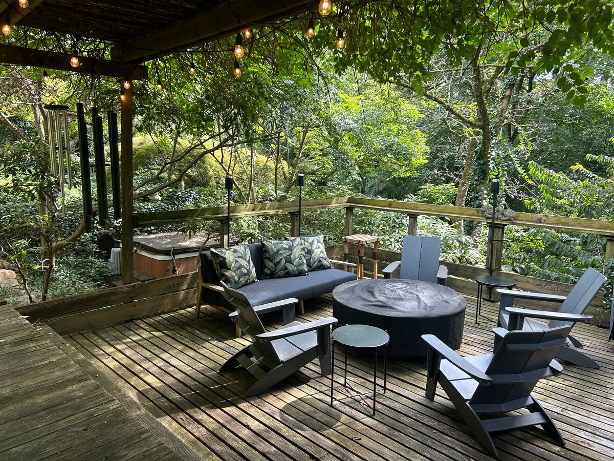 Fost il-qalba ta' Frenchtown NJ, se ssib enċitament moħbi fil-ġonna lussużi ta' River Witch Cottage. • Irrestawra lilek innifsek f' sodda queen lussuża • Ipprepara ikla sempliċi fil-kċina mgħammra b' kollox • Gawdi ruħek mill-isbaħ żona tal-ikel intima • Strieħ f' kumdità komda ħdejn fireplace tal-gass sabiħ • Erġa' ġedded fil-ġettijiet tal-banju tal-jacuzzi, imxarrab taħt id-dawl naturali tat-tamboċċi • Kafè ta' filgħodu jew inbid ta' filgħaxija fl-ambjent kwiet tat-terrazzin privat fuq barra