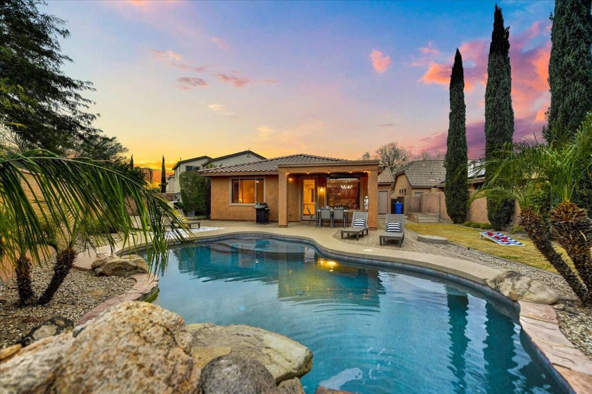 Skopri Phoenix bl-istil! Oqgħod fid-dar b' sular wieħed tagħna f' komunità serja u magħluqa, minuti 'l bogħod mill-mogħdijiet bla ħlas u x-xiri. Il-pets joqogħdu bla ħlas! Fost il-karatteristiċi hemm Smart TVs fil-kmamar tas-sodda kollha, pixxina msaħħna PRIVATA bla ħlas (mingħajr ħlas), finituri lussużi, kċina mgħammra b' kollox, 2 garaxxijiet tal-karozzi u għamara sħiħa għall-kumdità massima tiegħek. Ideali għal vaganza rilassanti! Sewqan ta' 20 minuta biss sa Lake Pleasant! Adattat għall-pets u aħna nappoġġjaw l-ugwaljanza. Minuti 'l bogħod mix-xiri u l-mogħdijiet ewlenin kollha.