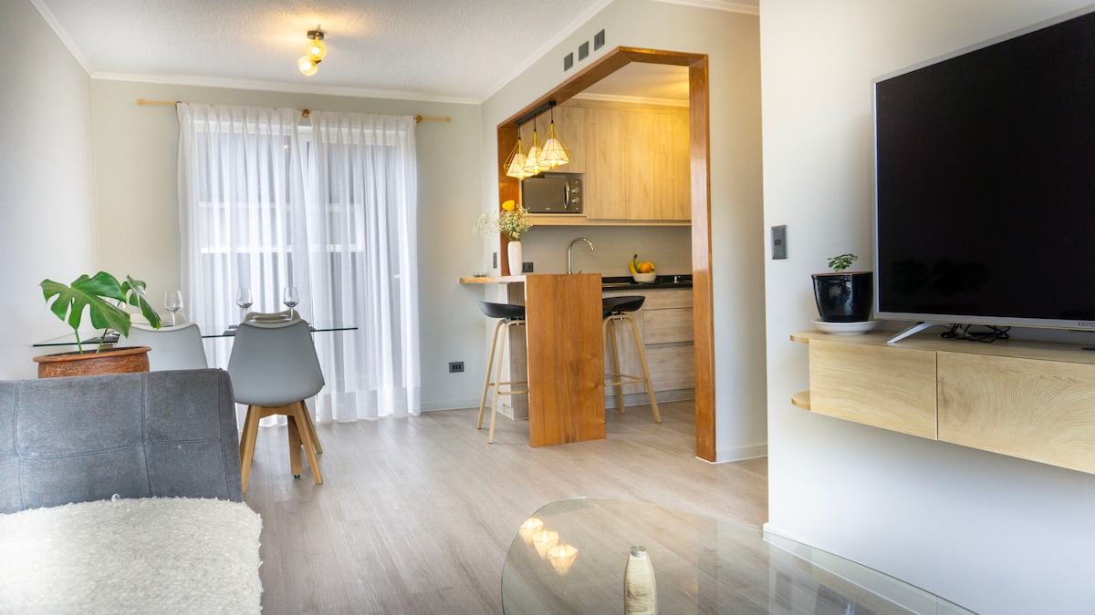 Gawdi l-kumdità u l-istil f' dan l-appartament mgħammar b' kollox, li jinsab strateġikament b' aċċess għal Av. Picarte u Costanera, ftit minuti 'l bogħod miċ-ċentru ta' Valdivia. - Kamra tal-ikel. - Kċina mgħammra b' kollox: forn tal-elettriku, hood, microwave, dishwasher, friġġ, kitla, toaster, magna tal-kafè u blender. - Kamra tal-banju b' heater tal-elettriku, ħadida tal-mogħdija, hair dryer u xugamani - Kamra tas-sodda b 'sodda doppja. -Terraċi -WiFi 800mbps - Parkeġġ bis-saqaf ġewwa l-bini.