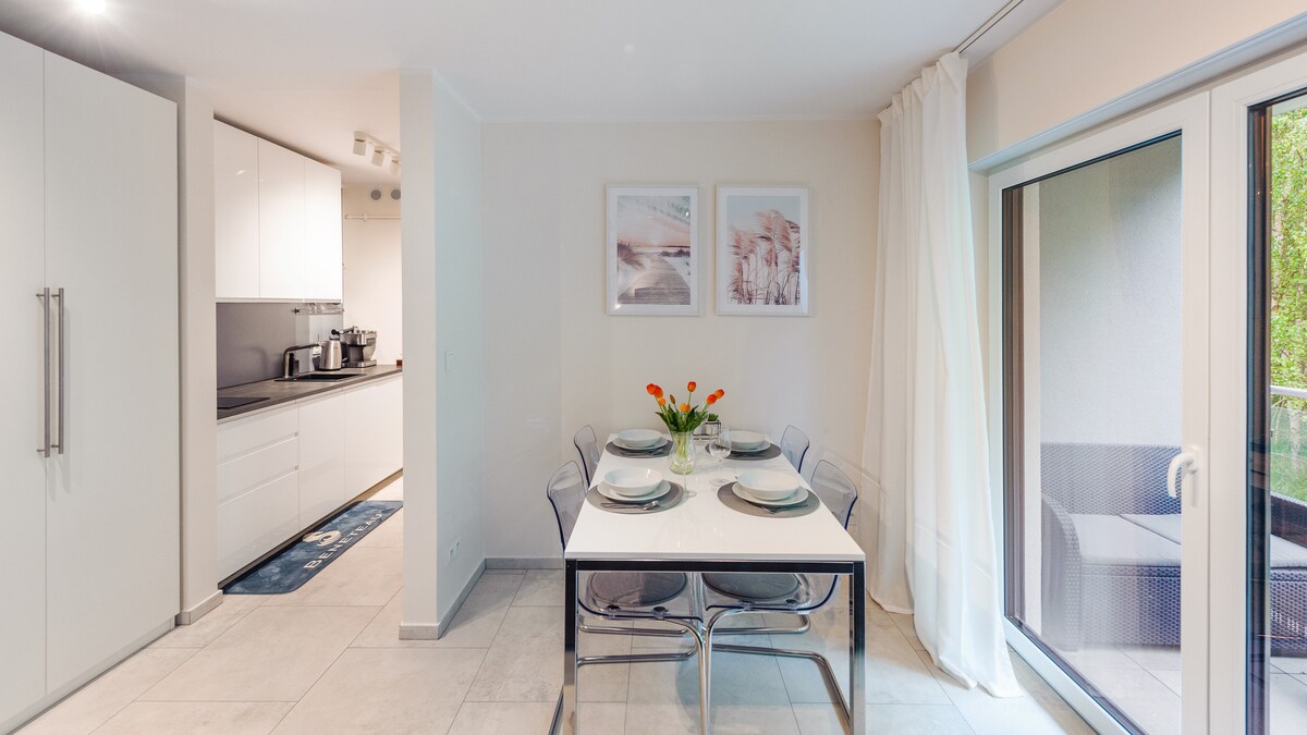 Witamy! Fl-appartament tagħna bi tliet kmamar (52 metru kwadru) issib il-kumditajiet li għandek bżonn biex tirrilassa: tagħmir ta 'kwalità għolja, żewġ gallariji kbar, li minnhom tħares lejn il-baħar, aċċess b' xejn għaż-żona TAL-ISPA b' pixxina, sawna, gym u bitħa fuq ġewwa kif ukoll spazju għall-parkeġġ TG. U l-aċċess għall-bajja jinsab eżatt barra l-bieb! Gawdi l-bajjiet, ix-xiri u r-ristoranti u l-attivitajiet ta 'divertiment tar-raħal idilliku ta' Rewal.