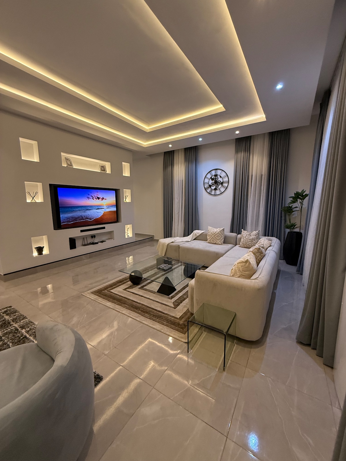 Din id-dar lussuża ġdida u unika għandha stil tagħha. Tinsab fil-qalba ta 'Lekki b' kumditajiet ta '5 stilel. Id-dar tinsab fi proprjetà sigura 24 siegħa kuljum b 'sigurtà personali tagħha stess, u kustodju ta' dar privata biex jattendi għall-ħtiġijiet tat-tindif tiegħek ta 'kuljum. Id-dar hija spazjuża ħafna, u tiġi b 'kumditajiet bħal ; Elettriku 24 siegħa kuljum, Pixxina, A/C, PS 5, Mejda tal-Pixxina, Table Tennis, Mejda tal-Air Hockey, Smart TV/Lock, Twieqi Awtomatiċi/Gate, Saqqijiet Ortopediċi, Speakers DSTV u Inbuilt.
