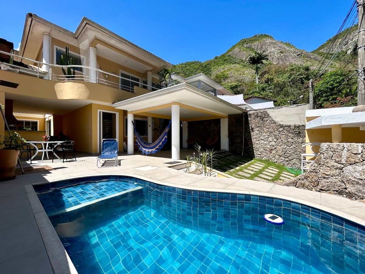 Ampla casa em bairro nobre de Niterói, em rua monitorada por câmeras do colégio Gaylussac. Proximidade de mercados, farmácias, parque da cidade (pôr do sol/trilhas), praia de S.Francisco (eventos públicos/bares, restaurantes), meios de transporte para a cidade do Rio (catamarã e ônibus). Piscina, 2 suítes, 3 quartos, 3 banheiros, cozinha equipada. (Apenas 1quarto no 1° piso) Ambientes espaçosos. É o lugar ideal para curtir com a família e pets! (Aceitamos eventos pequenos, valores a consultar)