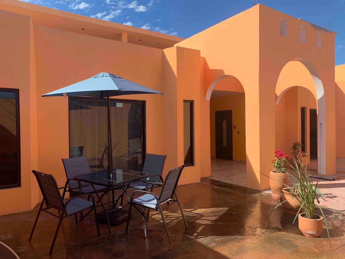 Passi mill-bajja u l-qalba tal-Park Nazzjonali tal-Baħar ta 'Loreto Bay, din id-dar affaxxinanti b' żewġt ikmamar tas-sodda u b' żewġt ikmamar tal-banju toqgħod sa 6 persuni u hija miżmuma u mżejna b' imħabba. Gawdi l-kafè u l-yoga ta 'tlugħ ix-xemx fuq it-terrazzin tat-tieni sular, linger fuq ikla rilassanti ta' al fresco wara li tiggrilja l-qabda tiegħek tal-ġurnata, u gawdi nżul ix-xemx kaleidoscopic b' marġerita mit-torri tat-tielet sular. Il-parti rilassanti tal-ġenna tiegħek qed tistenna fil-villaġġ seren ta 'Loreto Bay, fejn il-muntanji jiġu jgħumu fil-Baħar ta' Cortez!