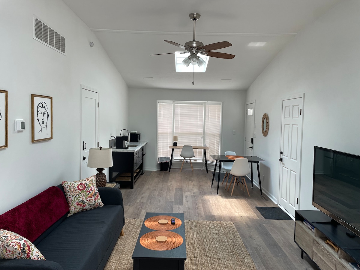 Merħba fil-Cottage tal-Clocktower - l-iktar dar qasira fil-post perfett! Żewġ blokki biss 'il bogħod miċ-ċentru tal-belt u żewġ blokki minn BGSU, din id-dar ta' 450 pied kwadru - mibnija fl-1920 u kompletament immudellata għall-kumdità tiegħek - fiha sodda queen, sufan irqad reġina, u kċina żgħira kollha f' post eleganti, sigur u ċentrali. Mimlija sabiħa u kumditajiet moderni ta 'seklu, il-cottage tinsab perfettament bejn Bowling Green State University fil-Lvant u vibranti, Bowling Green fil-punent.