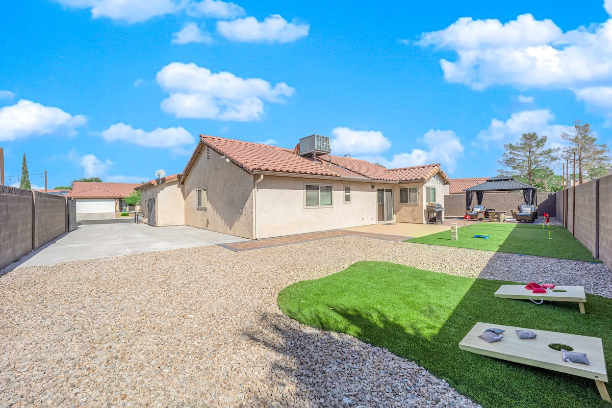 Dar f 'Las Vegas li għadha kif ġiet rinnovata' l bogħod minn darek b 'oażi ta' resort pool, ġonna personalizzati għal fire pit, jacuzzi modern ġdid b 'aktar minn 100 jets u faċilitajiet tal-ilma għalik biex tirrilassa u tgawdi, żona ta' terrazzin BBQ fil-kċina fuq barra, u żona divertenti għal-logħob fuq barra! Din id-dar għal familja waħda b 'każita tinsab ftit minuti' l bogħod mill-avventuri fuq barra, mill-eċitament tal-istrixxi u mill-attrazzjonijiet lokali maħbuba. Gawdi stil Bohemjan modern rilassat b 'dettalji maħsuba sew biex tiżgura żjara komda u memorabbli.