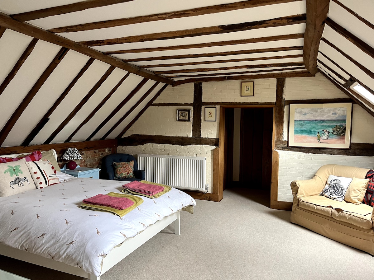Guest suite in wing of oak framed cottage. Situated in farmland between 2 picturesque villages, Old Basing and Newnham . Charming sitting room with log burner Spacious garden and terrace with covered verandah and furniture Simple DIY breakfast provided Private entrance King bed Great base for exploring country gardens and houses of Hampshire. Convenient for London, Winchester, Farnham, Windsor , Highclere Please note the location, vehicle required as 35 min walk to village and shops 2.5 miles +