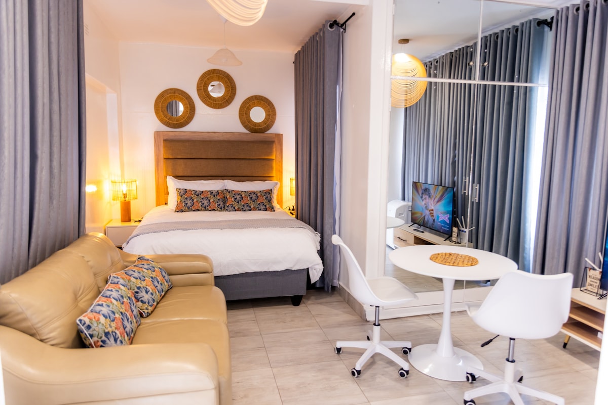 Gawdi żjara eleganti f' dan l-appartament Harare li jinsab fiċ-ċentru u ġdid fjamant. Il-faċilitajiet jinkludu spazju fejn tista' taħdem, Wi-Fi veloċi u bla limitu, smart TV, magna tal-ħasil u dryer u parkeġġ sigur. Tinsab f' żona ewlenija mingħajr qtugħ tal-elettriku, toffri spazju komdu u eleganti ideali għan-negozju jew għad-divertiment. Esperjenza l-kumdità, il-konvenjenza u s-sigurtà f' dawn is-sejbiet uniċi.