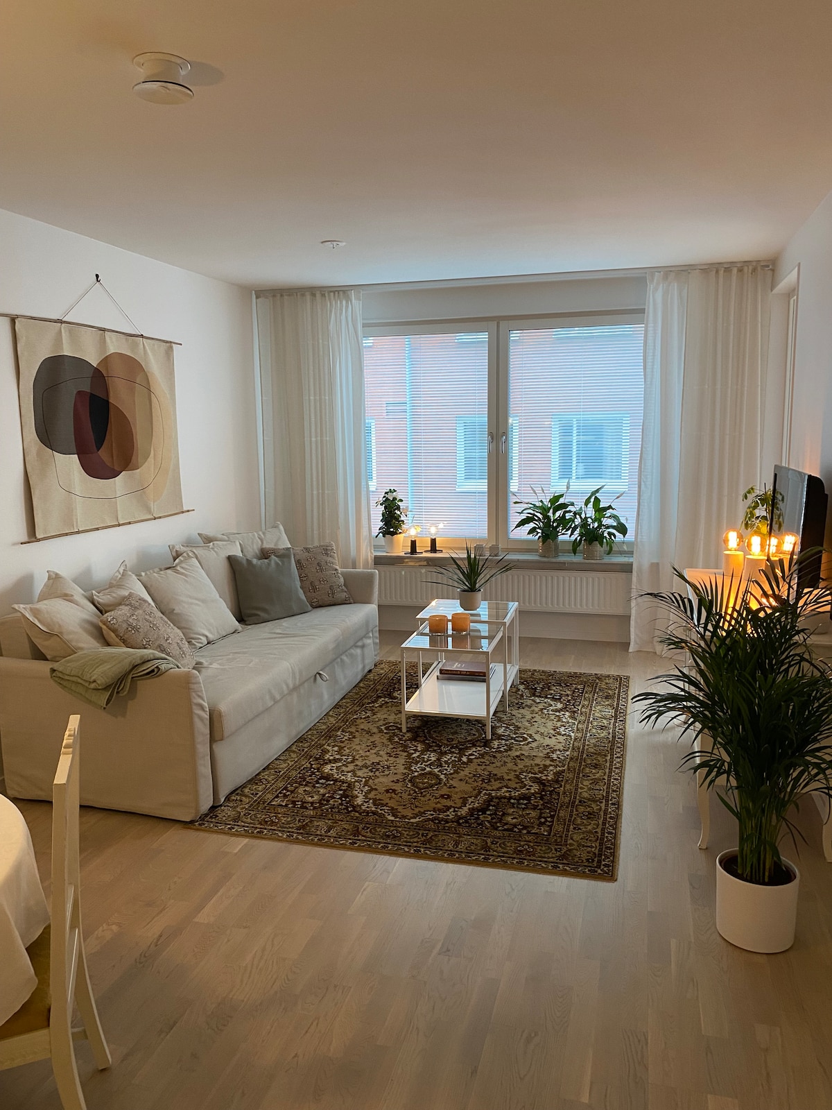 Nybyggd fin lägenhet på ca 40kvm. 140cm säng i sovalkov och en bäddsoffa på 200×140. Ca 8km utanför Örnsköldsvik. Busshållplats 20 meter från lägenheten med avgångar till centrum varje halvtimme. Det mesta som man behöver i bekvämligheter. Närhet till vatten och skog. Skidspår och motionsspår vid tomtgränsen Wifi ingår Frukost eller mat ingår ej
