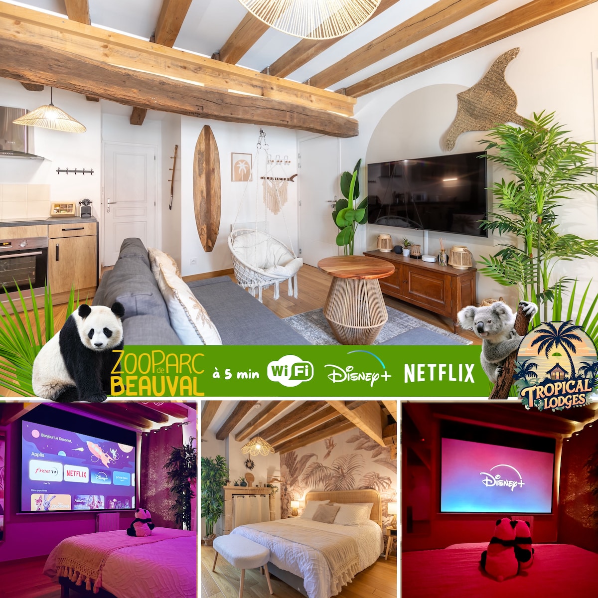 Ftit passi 'l bogħod mid-daħla għall-famuż Beauval Zoo, dan il-post uniku joffri ambjent komdu u mill-isbaħ. Il-cottage tagħna tispikka għad-disinn b' tema tagħha ispirat minn fawna selvaġġa eżotika u avventura, li toħloq atmosfera immersiva li se tieħu gost liż-żgħażagħ u l-anzjani. Akkomodazzjoni fuq livell wieħed, bi kċina mgħammra, b' kapaċità ta' klijenti: - Sodda 160x200 - Sodda 140x190 - Sodda 90x190 Il-bjankerija u l-lożor tas-sodda huma pprovduti Parkeġġ privat għall-karozzi Wifi u Disney+ disponibbli