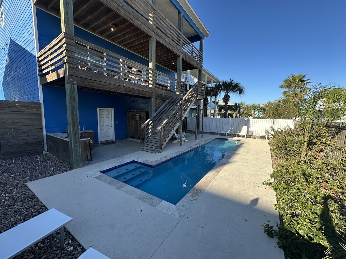 Ejja ħejji ruħek għal dil-oażi unika u addattata għall-familji! Dil-post fejn toqgħod iwiegħed vaganza lussuża qrib il-bajja! Għajxien fuq skala kbira, din hija sempliċiment l-aqwa dar ġewwa Port Aransas. ~ Karozza tal-Golf bla ħlas ~Qrib ħafna tal-bajja ~ Pixxina Privata Msaħħna (spiża addizzjonali ta' $ 50 kuljum biex issaħħan il-pixxina) ~Ħofra tan-Nirien bl-injam u s-s' mores inklużi (Novembru sa April) ~Tinsab fil-parti kwieta tal-belt ~Mixja lejn ir-ristoranti kollha ~ Televixin kbir fuq barra b' Sonos Soundbar ~Logħob tal-ħaxix (Cornhole, Mini Golf) ~ Dħul Mingħajr Ċavetta