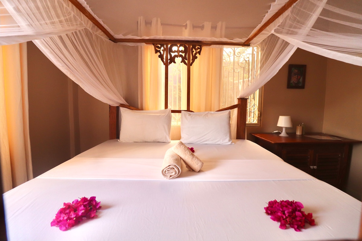 Spazju komdu b 'veduti terapewtiċi ta' nżul ix-xemx fuq l-oċean. Din hija ħarba mill-isbaħ mill-isbaħ tan-natura mill-folol fejn tista 'tgawdi l-oċean,l-għasafar, inżul ix-xemx,l-għawm,il-yoga, il-ġonna tropikali, id-doċċa sħuna u aktar(ara l-kumditajiet). Il-kolazzjon huwa inkluż,ħlief għal żjarat ta 'xahar jew aktar. Tista 'tordna l-ikla ta' nofsinhar,l-ikla ta 'filgħaxija Il-kiri ta 'scooter jew karozza huwa tajjeb għal aktar libertà ta' esplorazzjoni tal-gżira. It-trasport lokali huwa disponibbli fuq mixja ta '5 minuti. Il-bajjiet okkupati ta 'Kendwa u Nungwi jinsabu fi 15-il minuta sewqan.