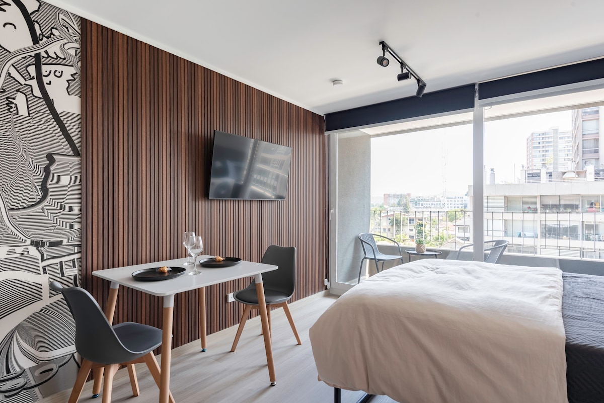 Gawdi appartament unbeatable u komdu fil-qalba tal-viċinat ta 'Providencia. Ideali għal vjaġġi tax-xogħol, għasel jew vaganzi romantiċi. Settur kwiet u sigur, qrib ristoranti magħrufa, Ċentru kummerċjali ta 'Costanera Center u ħwienet żgħar. Arja kkundizzjonata | WIFI Internet | Pool (Dic-Feb, skont id-disponibbiltà) Metro 3 minuti mixi, Costanera Center 15-il minuta, Qrib ristoranti, parks u ħafna iktar! L-ebda parkeġġ.